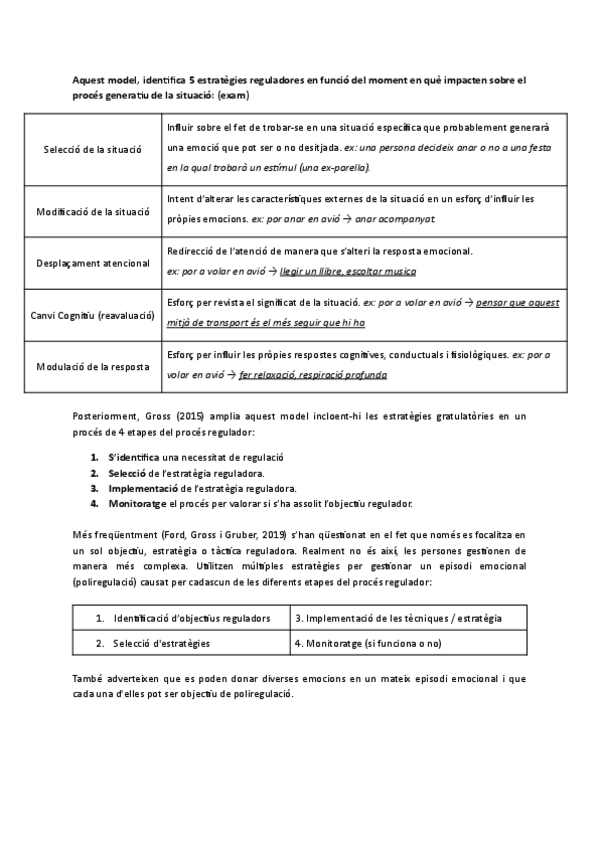 Regulació emocional, facetes d'aquesta regulació, model processual de la regulació emocional. Dificultats que es troben en les 4 etapes de la regulació (identificació, selecció, implementació i monitoratge). Estratègies de regulació emocional i anàlisi d'