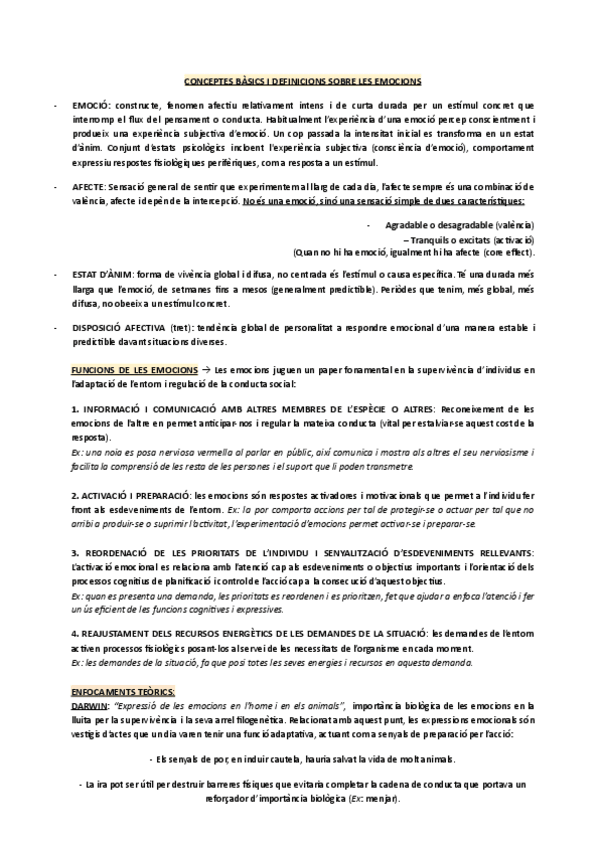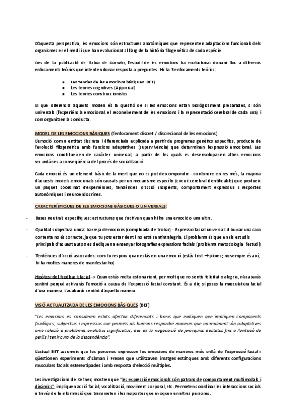 Definicions, funcions de les emocions, enfocaments teòrics, models de les emocions bàsiques, característiques de les emocions bàsiques i universals, visió actualitzada de les emocions bàsiques (BET), percepció de les emocions, construccionisme psicològics