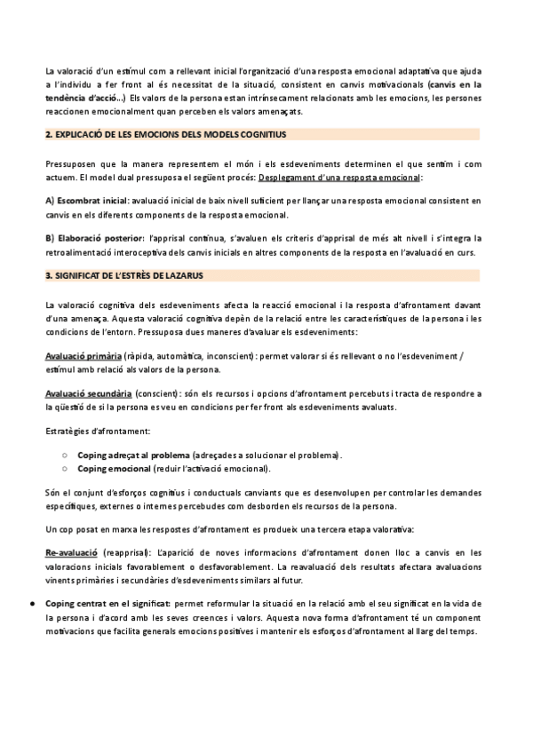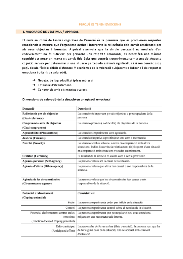 Valoració de l'estímul, dimensions de valoració, models cognitius, estrès per Lazarus, paper de les atribucions en l'origen de les emocions, distorsions cognitives i actituds disfuncionals en l'origen de les emocions, anàlisi cognitiva dels episodis emoci