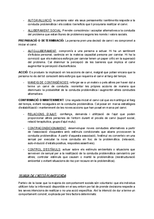 Teoria trasteòrica del canvi (pre-contemplació, contemplació, preparació, acció, recaiguda + profundització), Teoria de l'acció planificada (actitud cap a l'acció, norma subjectiva, percepció del control), Roda del canvi conducta i la BCT Taxonomy, tècniq