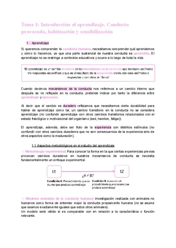 AME T1_ Introducción al aprendizaje. Conducta provocada, habituación y sensibilización