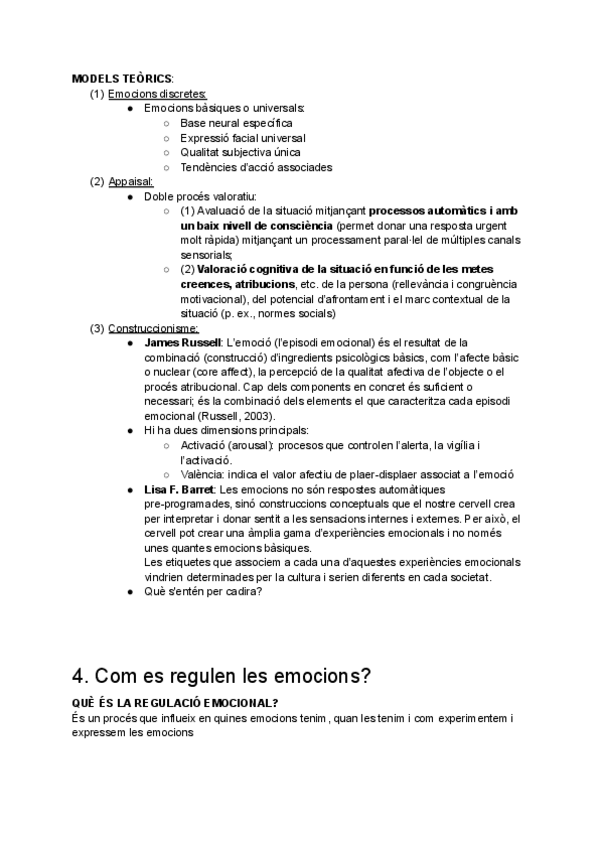 Definicions, funcions de les emocions, enfocaments teòrics, models de les emocions bàsiques, característiques de les emocions bàsiques i universals, visió actualitzada de les emocions bàsiques (BET), percepció de les emocions, construccionisme psicològics