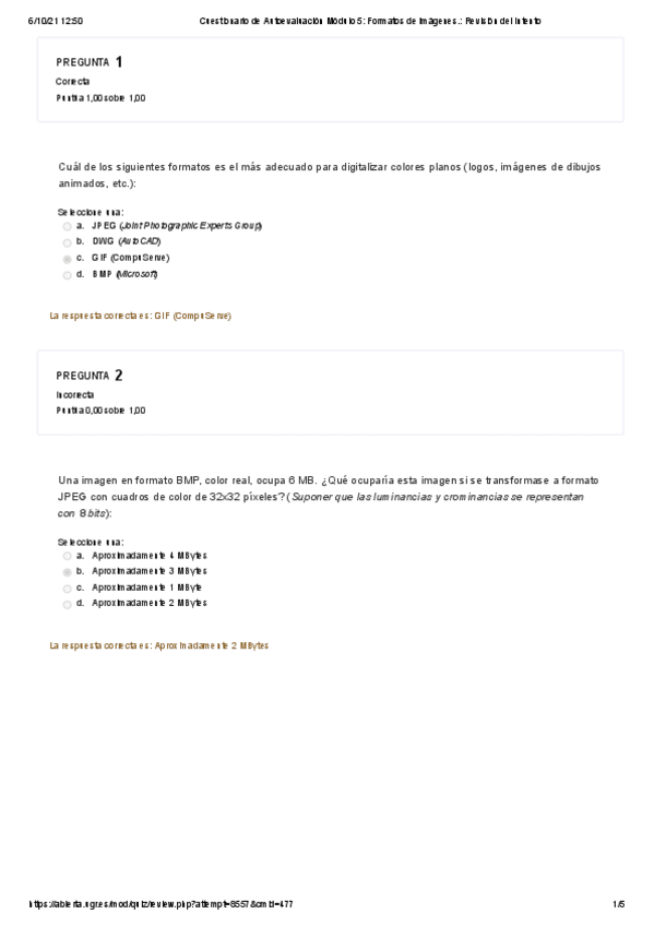 Cuestionarios actualizados 2021/22