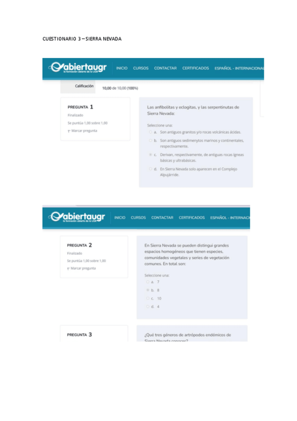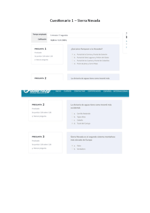 He publicado nuevos apuntes de 1º Apuntes Variados: Cuestionarios Sierra Nevada