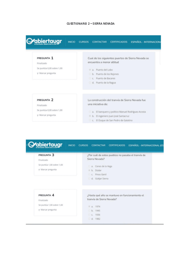 Cuestionarios Sierra Nevada