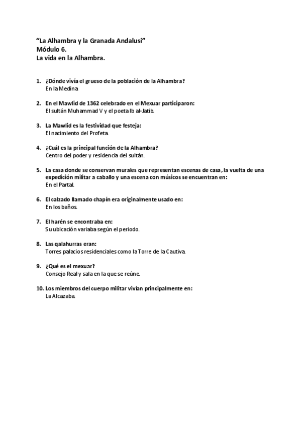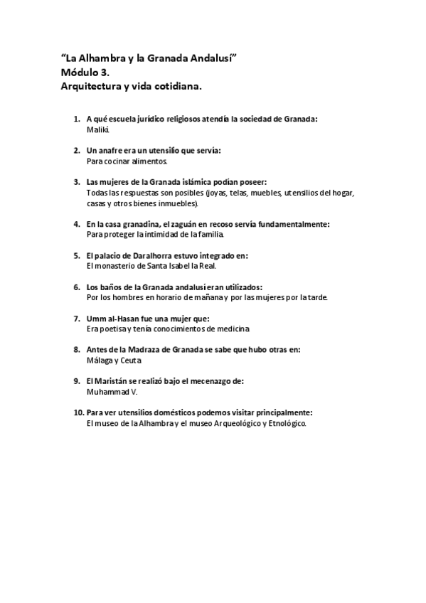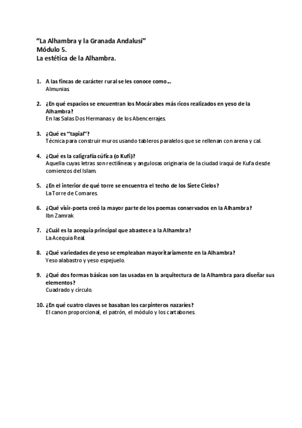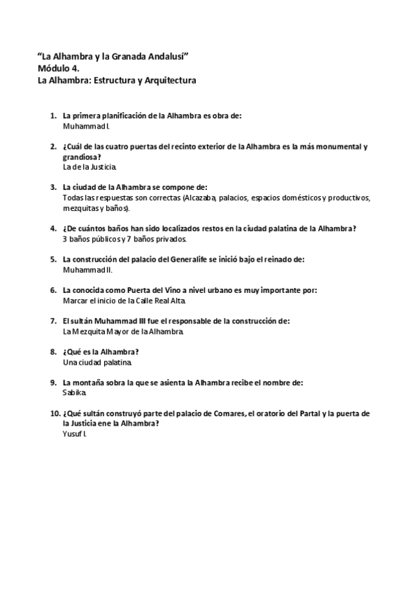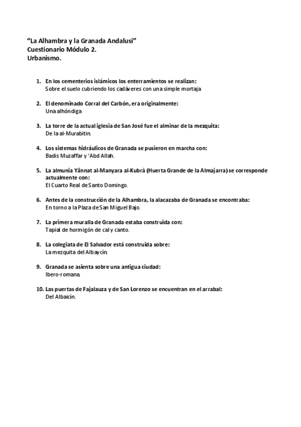 Cuestionarios Resueltos AbiertaUGR MOOC - La Alhambra y la Granada Andalusí