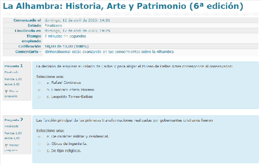Todos los módulos del curso de la Alhambra con nota 10/10.