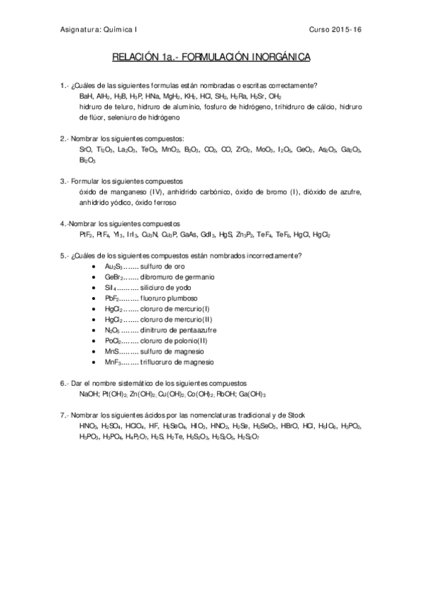 He publicado nuevos ejercicios de 1º Apuntes Variados: Ejercicios Química II