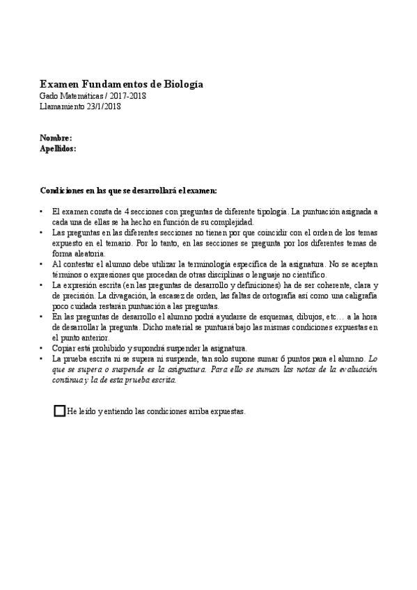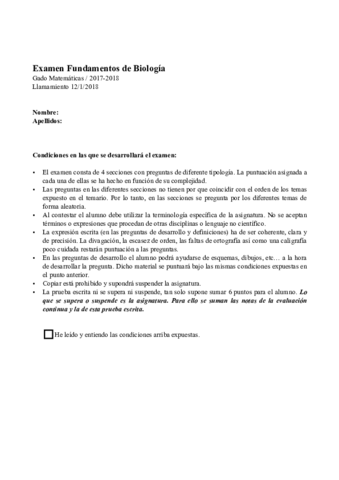 Exámenes Fundamentos Biología 2017-2018