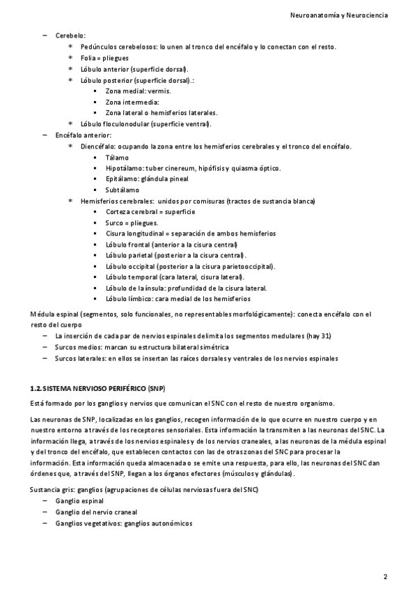 Apuntes neuroanatomía y neurociencia