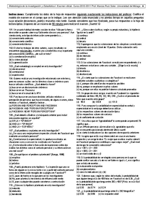 Exámenes Psicometría