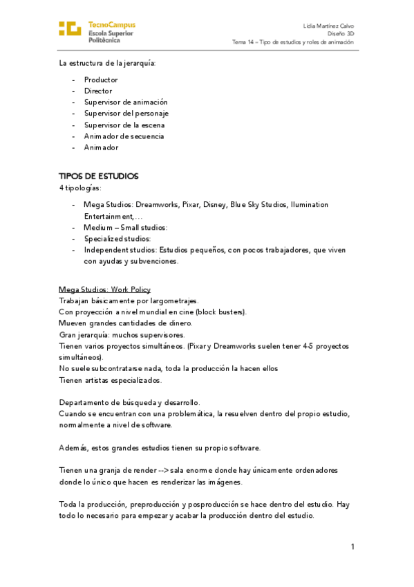 He publicado nuevos apuntes de 1º Apuntes Variados: Tema 14 - Tipos de estudios y roles en animación .pdf