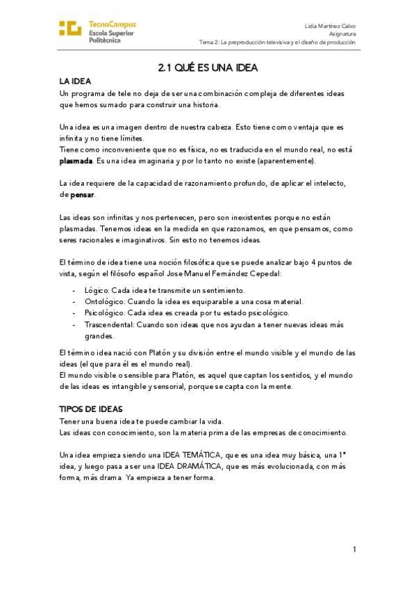 He publicado nuevos apuntes de 1º Apuntes Variados: Tema 2 - La preproducción televisiva y el diseño de producción.pdf