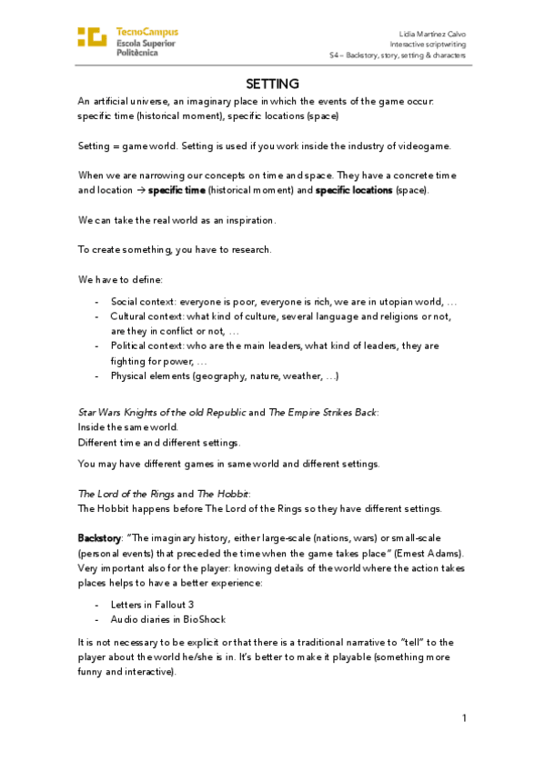 He publicado nuevos apuntes de 1º Apuntes Variados: S4 – Backstory- story, setting & characters .pdf