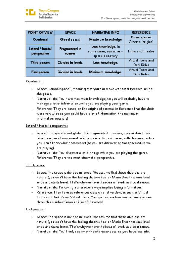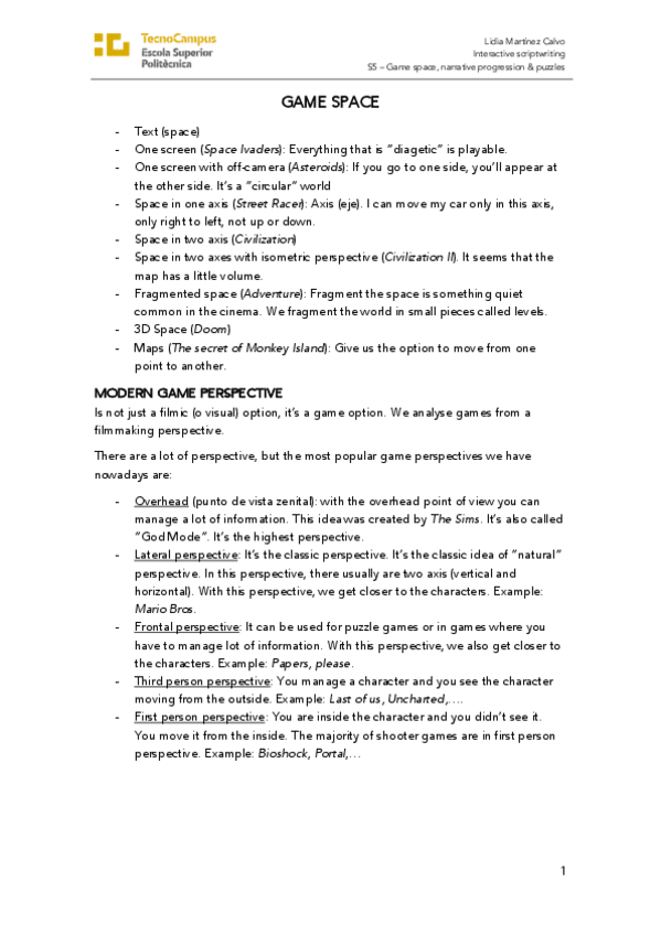 He publicado nuevos apuntes de 1º Apuntes Variados: S5- Game space- narrative progression & puzzles.pdf