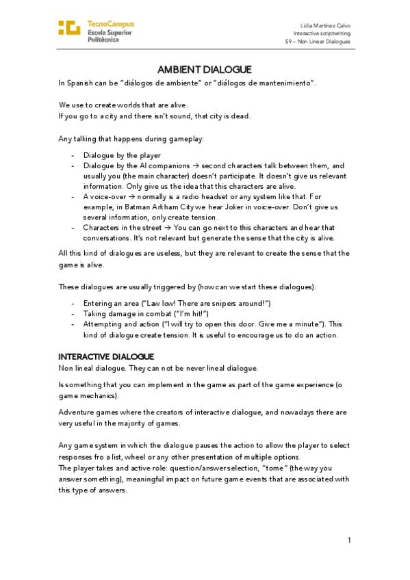 He publicado nuevos apuntes de 1º Apuntes Variados: S9- Non linear dialogues.pdf