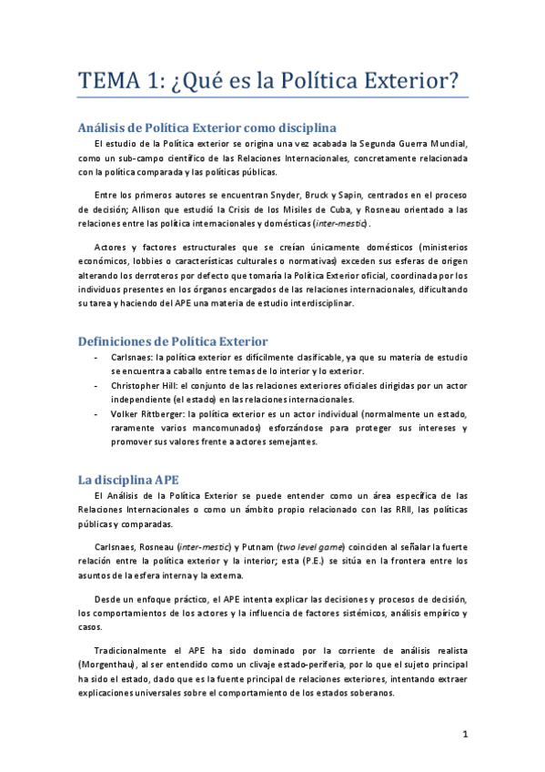 APUNTES ANÁLISIS DE POLÍTICA EXTERIOR