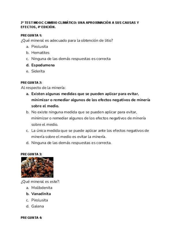 2º TEST MOOC cambio climático, 4ª edición, 10/10 aciertos.