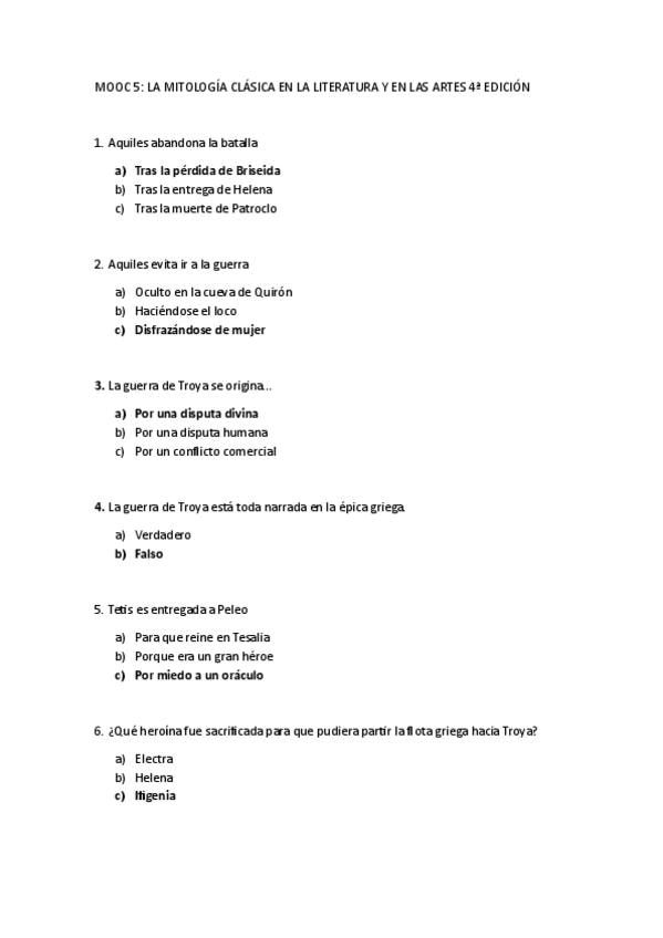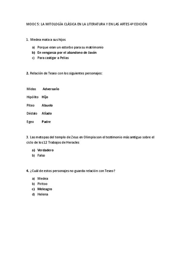 2º cuestionario MOOC mitología clásica 4ª Edición