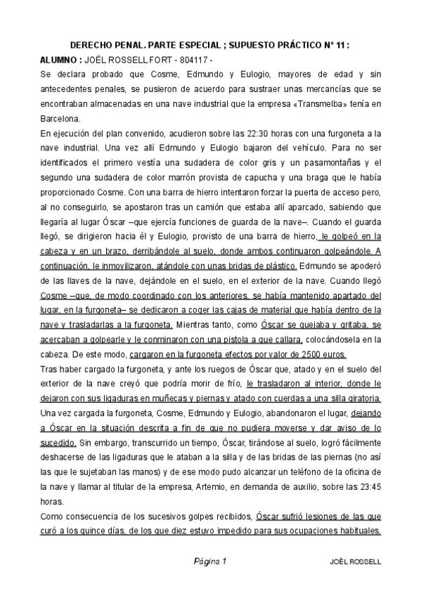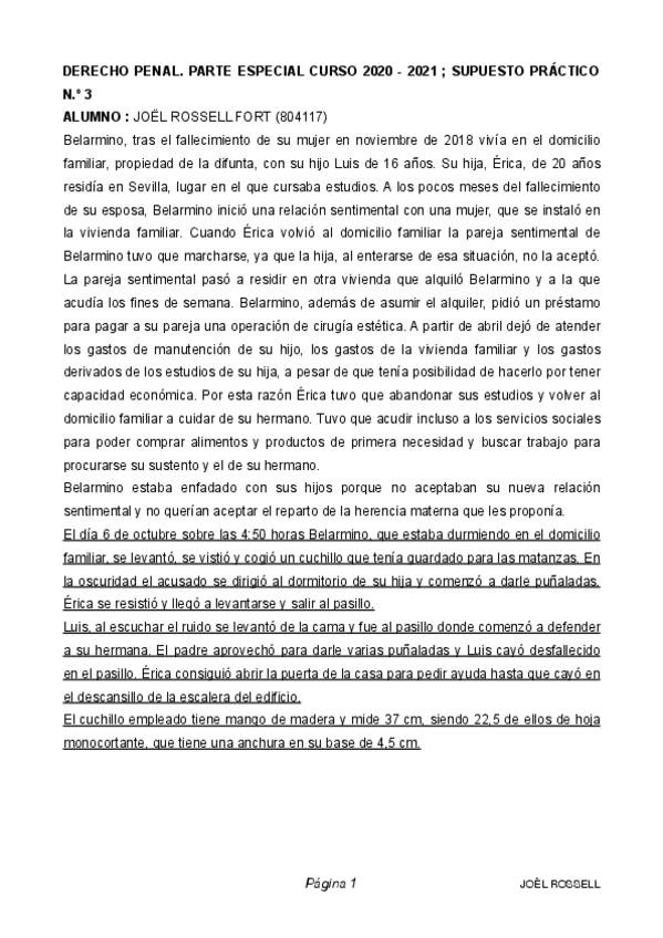 PRÁCTICAS DERECHO PENAL PART ESPECIAL