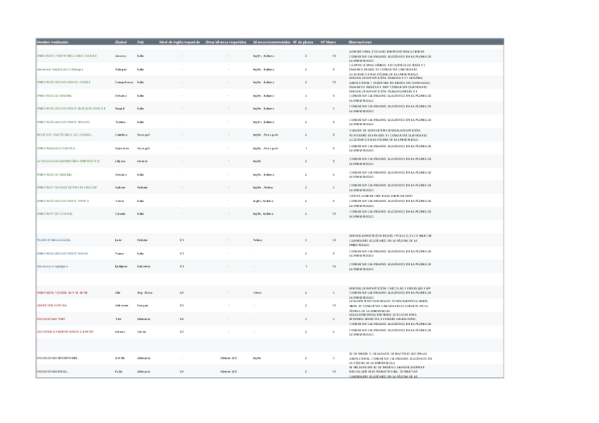 Clasificación de los destinos Erasmus del grado para el curso 26/27