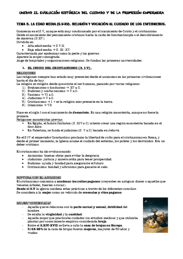 EVOLUCIÓN HISTÓRICA DE LOS CUIDADOS Y LA ENFERMERÍA (OPTATIVA 3ER CURSO)