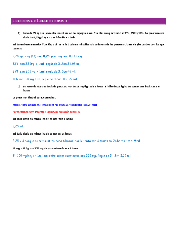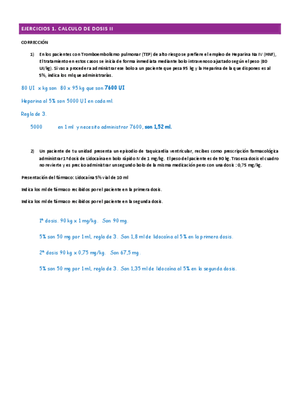 Ejercicios de cálculo de dosis para practicar de cara al examen de clinica avanzada
