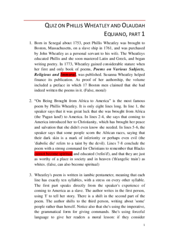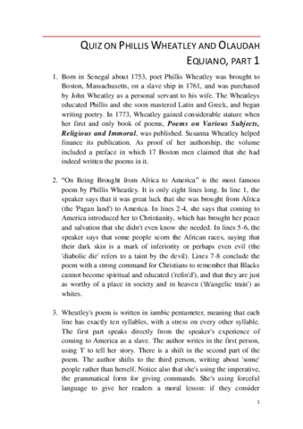 He publicado nuevos test de 1º Apuntes Variados: 11. Phillis Wheatley