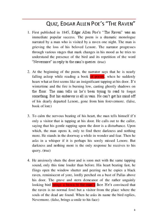 He publicado nuevos test de 1º Apuntes Variados: 15. Edgar Allan Poe