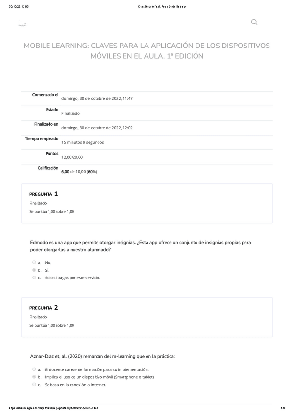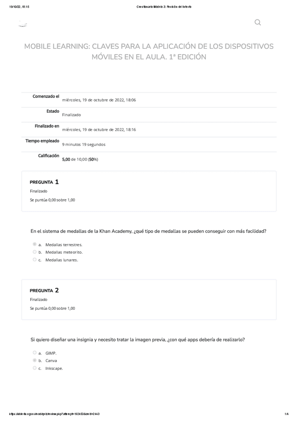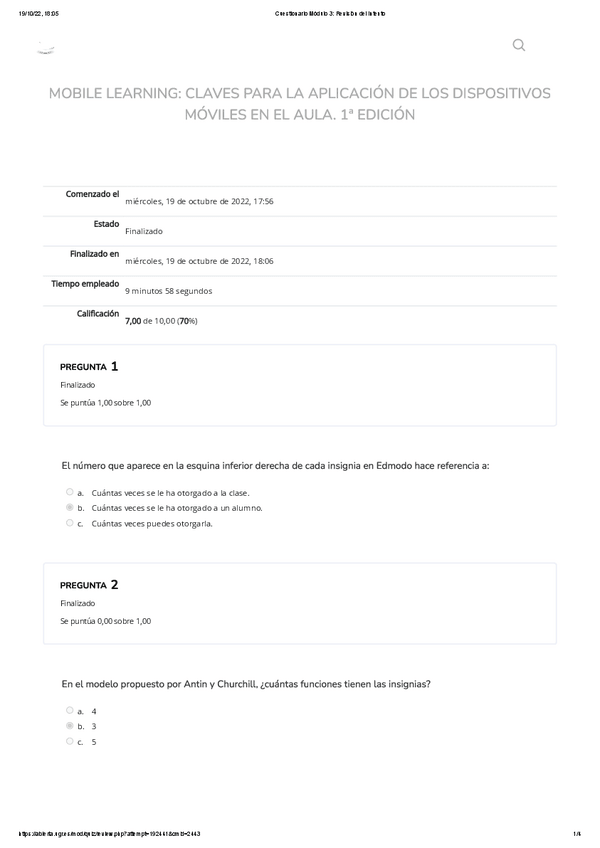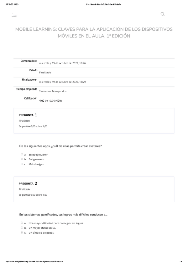 He publicado nuevos examenes de 1º Apuntes Variados: Cuestionario 2- MOOC Mobile Learnig