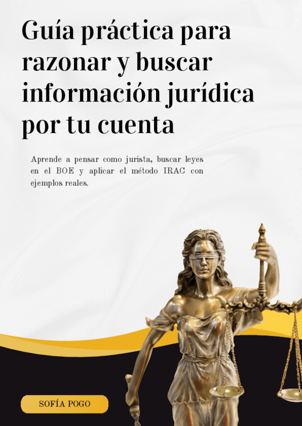 Esta guía te enseña a pensar y razonar como jurista. Incluye: ⚖️ Cómo identificar la rama del Derecho ? Cómo buscar leyes en el BOE ? Método IRAC explicado con ejemplos reales ⚖️ Cómo encontrar sentencias en el CENDOJ ? Introducción al Derecho Internacion