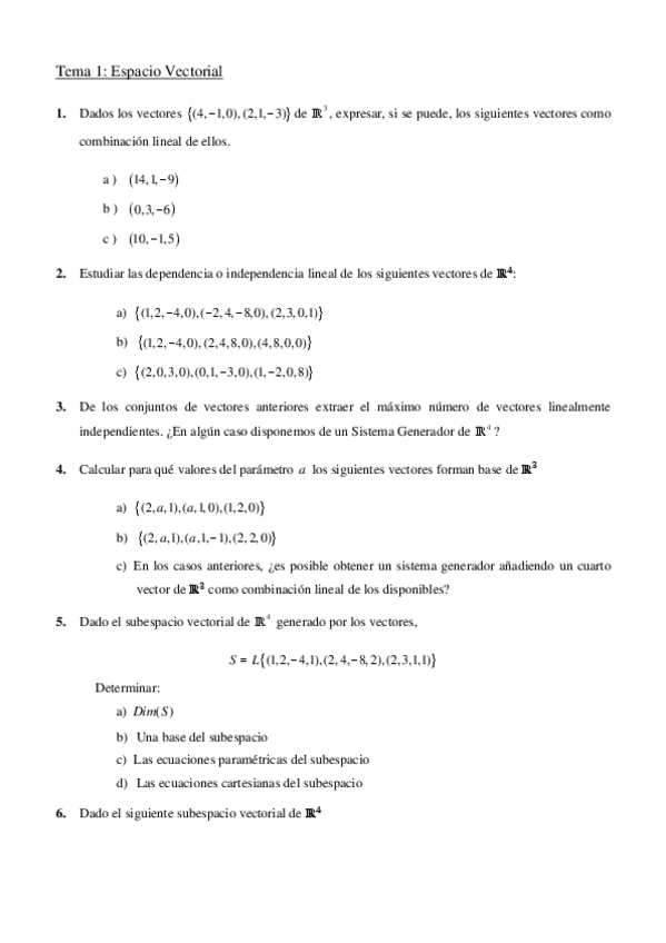 He publicado nuevos ejercicios de 1º Apuntes Variados: Ejercicios espacios vectoriales.pdf