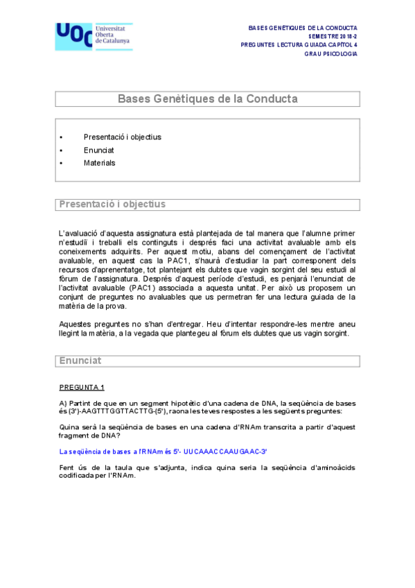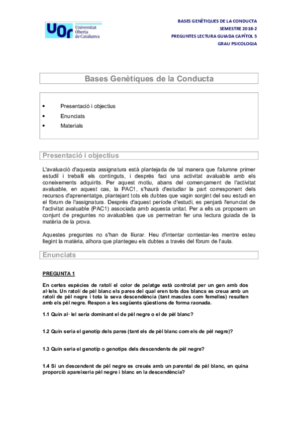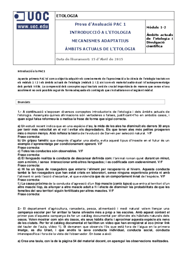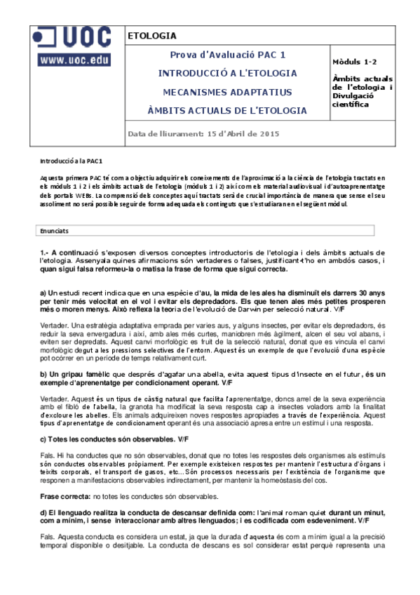 He publicado nuevos examenes de 4º Apuntes Variados: PAC 1 - Aprenentatge i condicionament (B).pdf