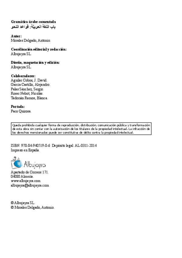 He publicado nuevos apuntes de 1º ÁRABE CLÁSICO (NIVEL 1): MORALES-Gramatica-arabe-comentada.pdf