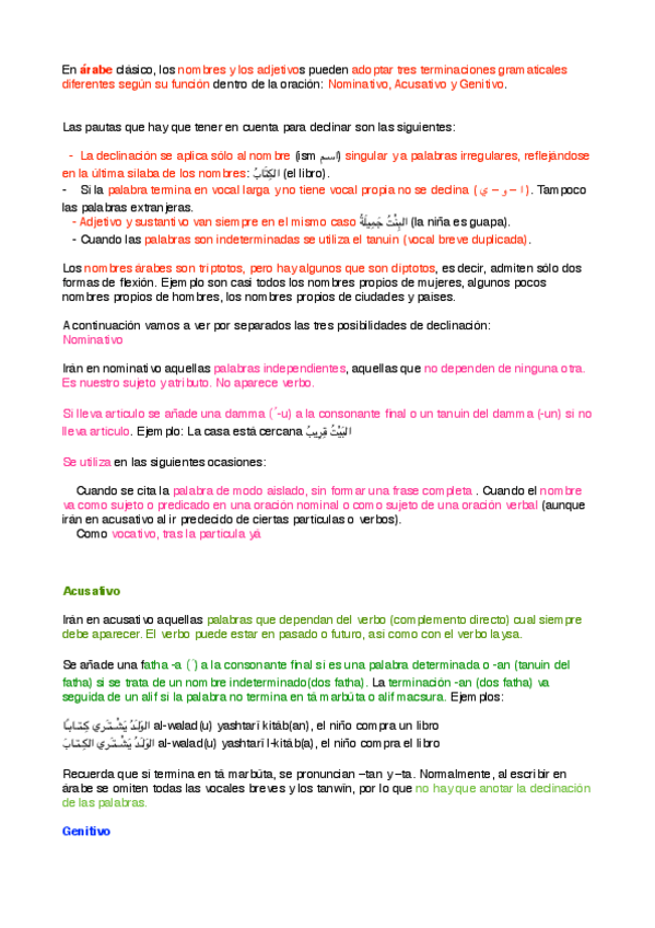 Árabe clásico, apuntes