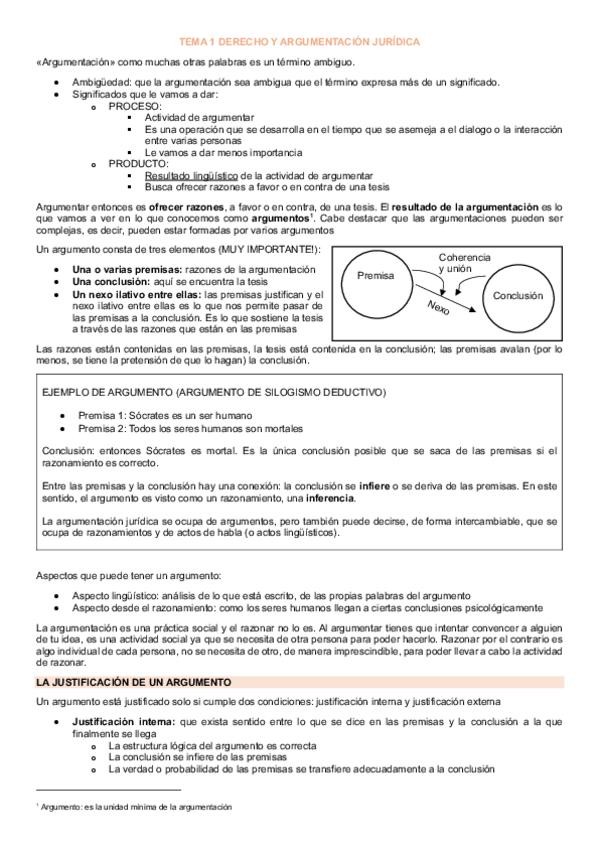 Apuntes tema 1 resumidos y explicados de argumentación jurídica con Aquilino