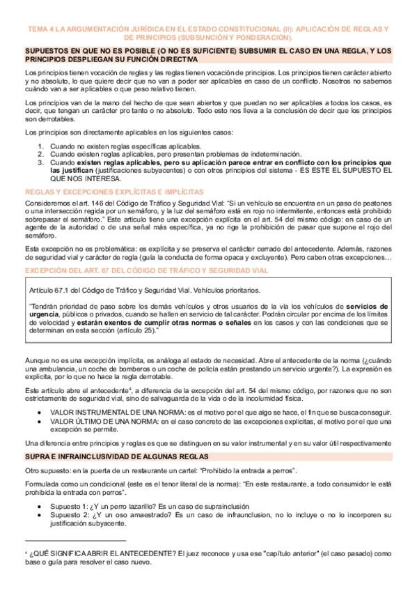 Apuntes tema 4 resumidos y explicados de argumentación jurídica con Aquilino