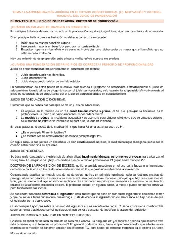 Apuntes tema 5 resumidos y explicados de argumentación jurídica con Aquilino