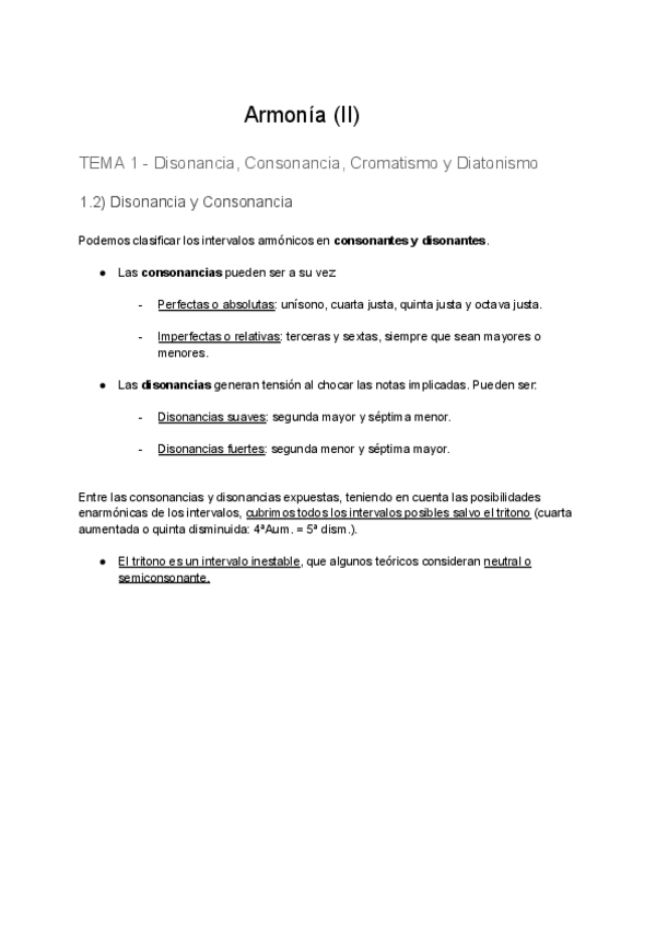 Resumen del Tema 1: Disonancia, consonancia, cromatismo y diatonismo.
