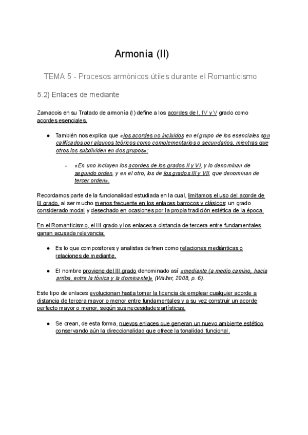 Resumen del Tema 5: Procesos armónicos útiles durante el Romanticismo.