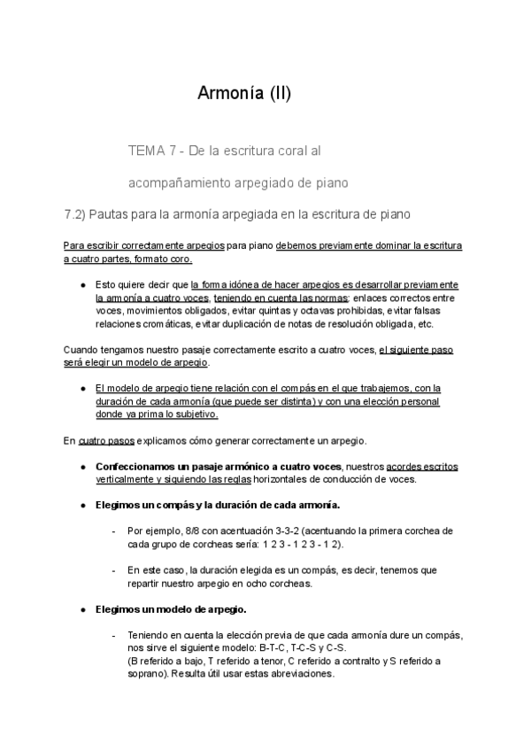 Resumen del Tema 7: De la escritura coral al acompañamiento arpegiado de piano.