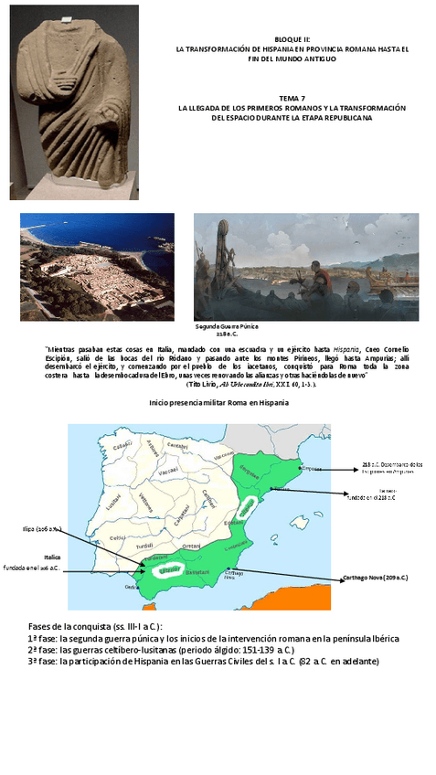 BLOQUE II: La transformación de Hispania en provincia romana hasta el fin del mundo antiguo- 6. La llegada de los primeros romanos y la transformación del espacio durante la etapa republicana.