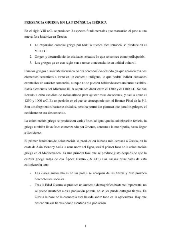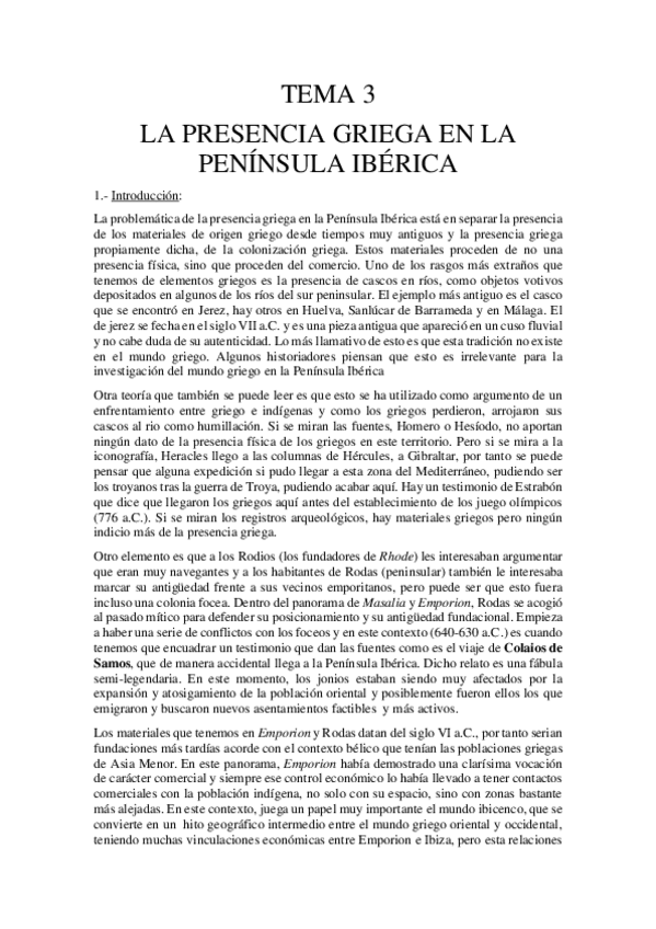 BLOQUE I: La Península ibérica desde el Bronce Final hasta la conquista romana- 3. La presencia griega