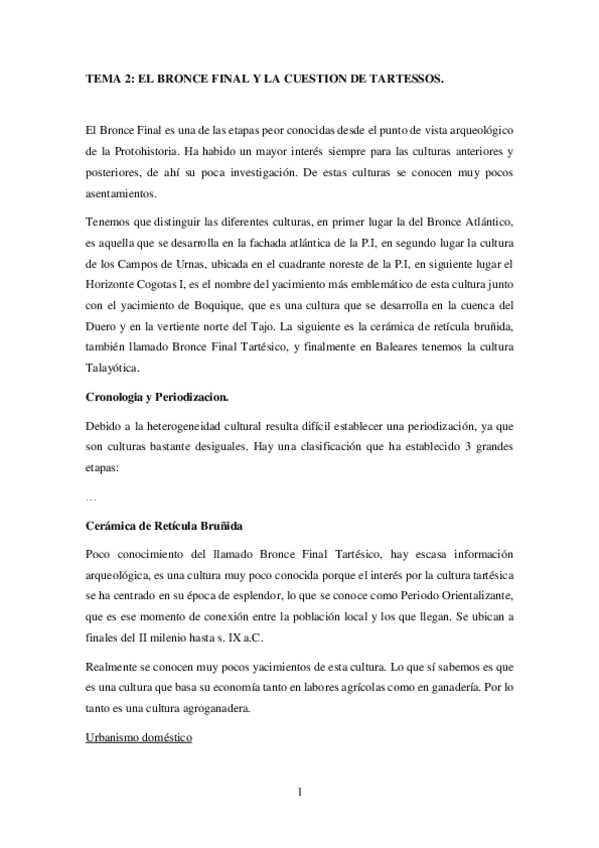 BLOQUE I: La Península ibérica desde el Bronce Final hasta la conquista romana-2. El Bronce Final y la cuestión de Tartessos