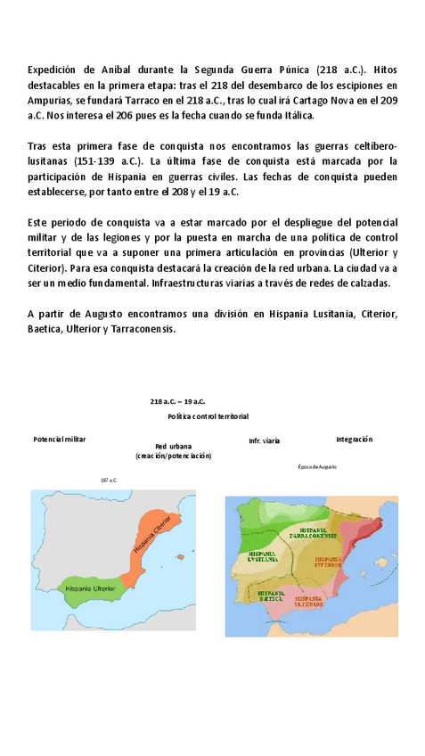 BLOQUE II: La transformación de Hispania en provincia romana hasta el fin del mundo antiguo- 6. La llegada de los primeros romanos y la transformación del espacio durante la etapa republicana.