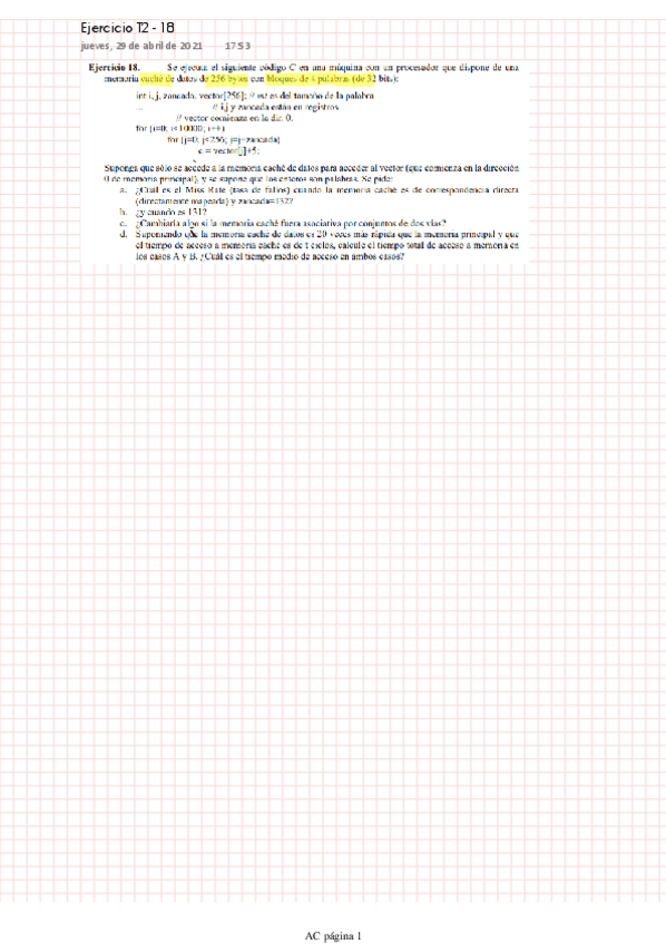 He publicado nuevos ejercicios de 2º Arquitectura de Computadores: Ejercicio de clase -Tema3.pdf
