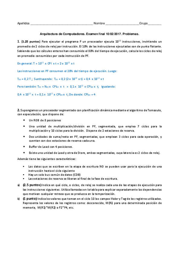 He publicado nuevos examenes de 3º Arquitectura de Computadores: Tema6Ejerciciosexamensol.pdf