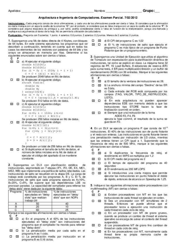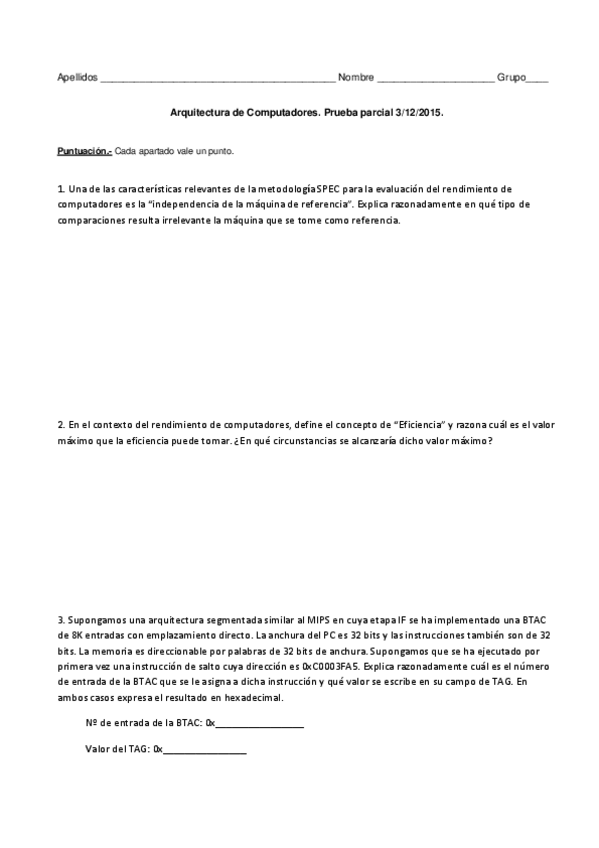 He publicado nuevos examenes de 3º Arquitectura de Computadores: Tema1Ejerciciosexamenessol.pdf
