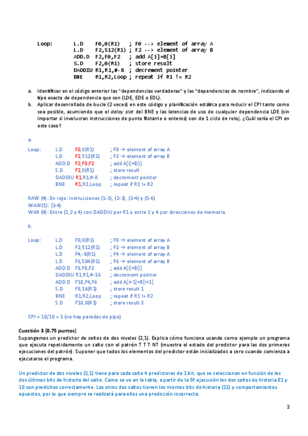 He publicado nuevos apuntes de 3º Arquitectura de Computadores: Tema2Ejerciciosexamenessol.pdf