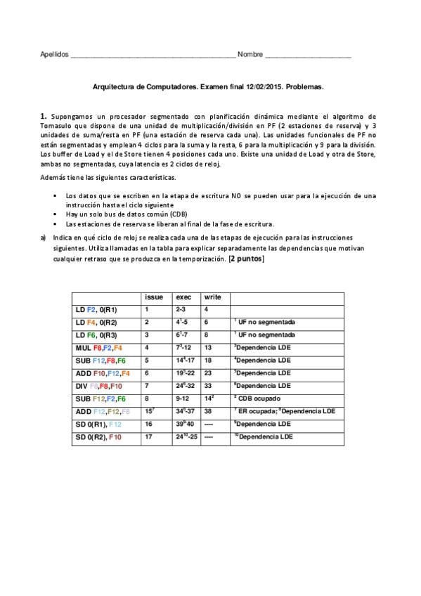 He publicado nuevos examenes de 3º Arquitectura de Computadores: Tema42Ejerciciosexamenessol.pdf